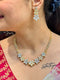 Details . Base Material: Pure Brass Plating: Gold Stone: Cubic Zirconia Finish: Embellished In the Box: Necklace with Chain, Earring Pair, Extra Push     Size And Fit Necklace Earrings Weight: 25.2 g Length: 23.5 cm with Adjustable Chain Width: 4 cm Weight: 11.9 g Length: 5.5 cm Width: 2...