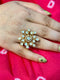 Details Base Material: Pure Brass Plating: Antique Gold Stone: Moissaite Polkies, Imitation Stones Finish: Embellished In the Box: Ring Size And Fit Rings Weight: 11.8 g Length: 3.5 cm Width: 2.5 cm Size Type: Adjustable     Note– Actual product colors might vary a bit from what it appears in...