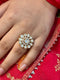 Details Base Material: Pure Brass Plating: Carat Stone: Moissanite Polkies, Imitation Stones Finish: Embellished In the Box: Ring Size And Fit Rings Weight:11.9 g Length: 4.8 cm Width: 4 cm Size Type: Adjustable     Note– Actual product colors might vary a bit from what it appears in the photographs...