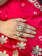 Details Base Material: Pure Brass Plating: Carat Stone:Moissanite Polkies , Imitation Stones Finish: Embellished In the Box: Ring Size And Fit Rings Weight: 7.3 g Length: 2.5 cm Width: 2.5 cm Size Type: Adjustable     Note– Actual product colors might vary a bit from what it appears in the...