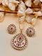 Base Material: Pure brass Plating : Antique gold  Stone : Moissanite polki  Finish: Embellished In the Box: Pendant with chain, Earring Pair, Extra Push  Size And Fit Pendant Earrings Weight: 18.9 g Pendant Length: 3 cm Chain Length 28 Width: 2 cm Weight: 17 g Length: 4.5 cm Width: 2.5...
